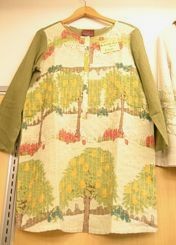 写真のプリントは果樹園のようです。他にもアフリカの刺繍をイメージしたプリントや、ペーズリープリントのものもあり、多様に仕上がっております。