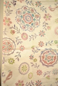 窓や照明の光が柄の形に透けて、床や壁に光で柄を描いてくれるんです!写真の柄のモチーフはバングラディッシュのノクシカタという刺繍からデザインされてます。