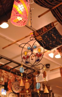 モビールとは天井から吊るオーナメントのものを指します。そのモビールの先にベルを付け、色とりどりのビーズで飾り付けてあります*