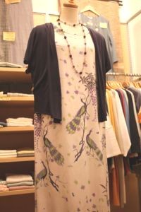 孔雀と藤の花をモチーフにしたプリントドレスです。