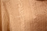 女性たちの手によって一つ一つ施される刺繍は32種類もの手法があり、代表的な手法として、フラットステッチ、米粒の様に浮き出したステッチ、布の裏柄に刺し表から見ると陰影をつける効果のあるシャドーワーク、制裁な網目のようなステッチなどが挙げられるようですが、どれも複雑で熟練の技を要します。