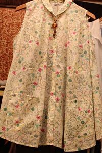もちろん綿100%、大小のお花とペーズリーが散りばめられたドリーム柄のポップなデザインとなっております。前あきのブラウスですので、ボタンをあけて、羽織りとしてもご着用いただけます。ノースリーブですが、えり付きのため清楚な印象をもたらしてくれますね。ポケットもついておりますのでとても便利かつお洒落なお品物となっております。